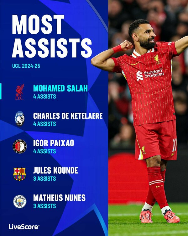 Najlepsi asystenci tego sezonu Ligi Mistrzów