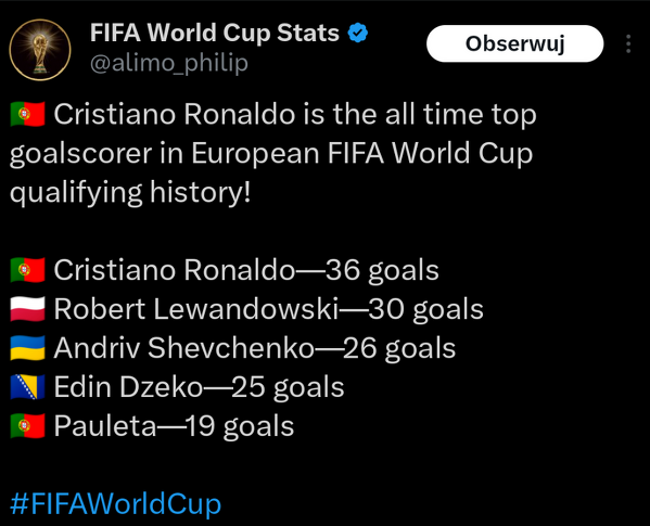 Najlepsi strzelcy w historii el. do MŚ w strefie UEFA