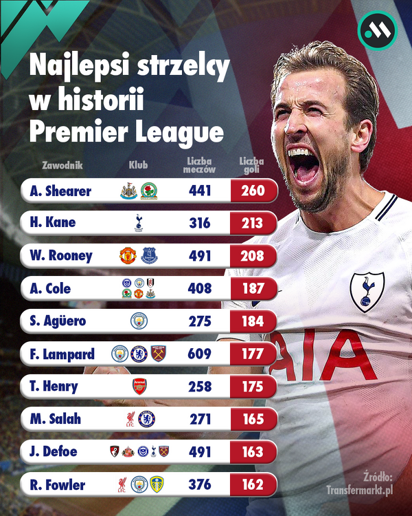 Najlepsi strzelcy w historii Premier League