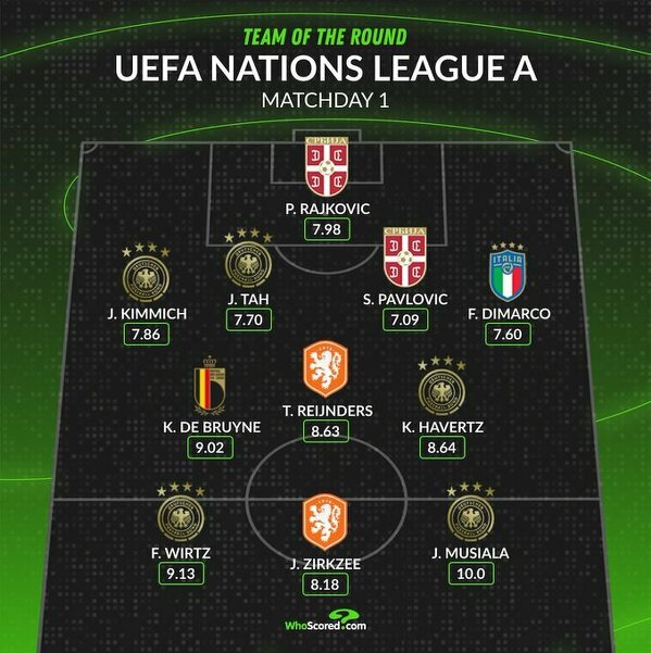 Najlepsza jedenastka 1. kolejki Dywizji A Ligi Narodów według WhoScored