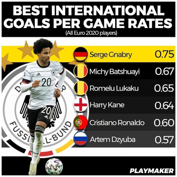 Najlepsza średnia bramek na mecz w reprezentacji spośród piłkarzy uczestniczących na Euro 2020