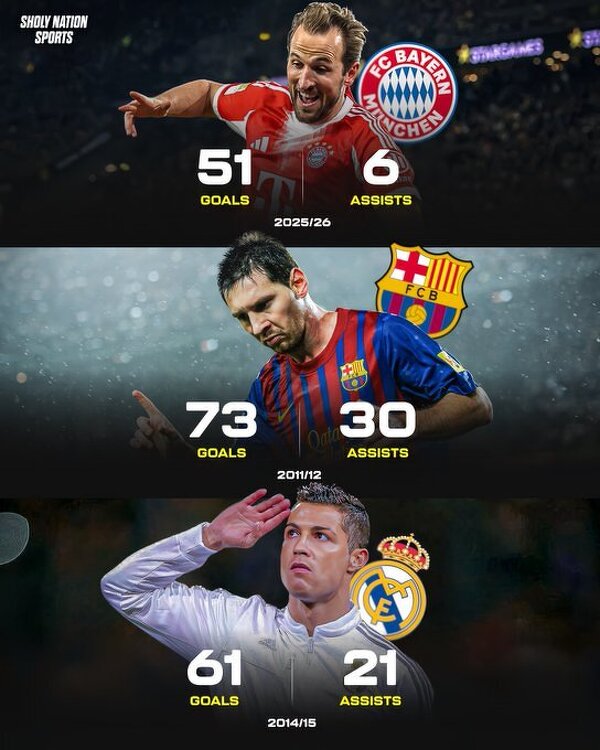 Najlepszy sezon w karierze Kane'a, Messiego i Ronaldo