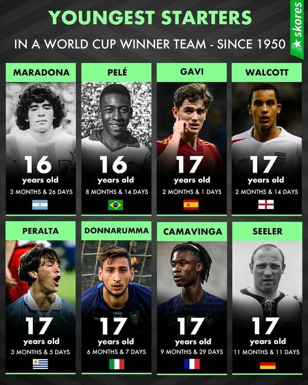 Najmłodszy debiutant w reprezetacjach które mają w dorobku Mistrzostwo Świata
