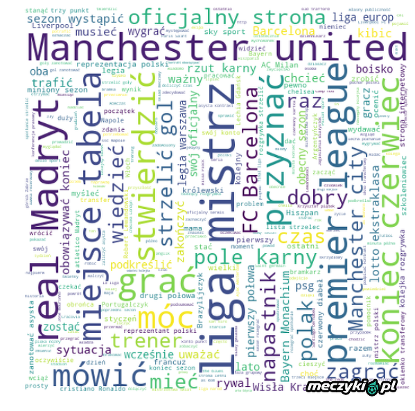 Najpopularniejsze słowa w artykułach o piłce nożnej (meczyki.pl) w ostatnich 12 m-cach