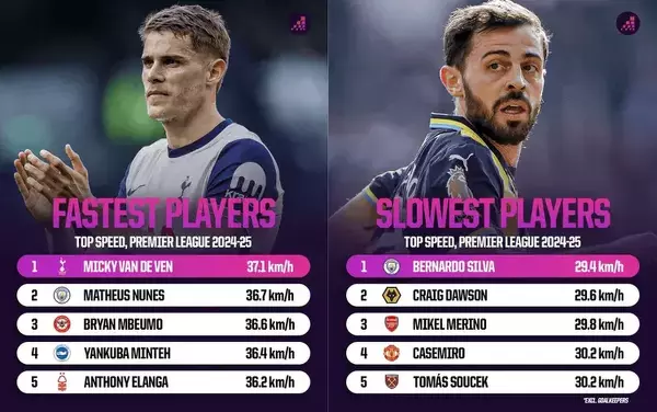 Najszybsi i najwolniejsi piłkarze tego sezonu Premier League