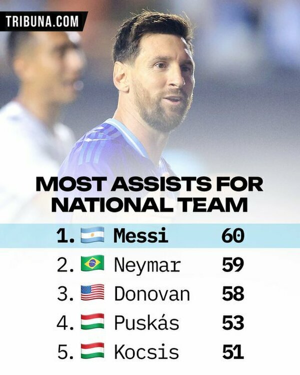 Najwięcej asyst w historii dla reprezentacji narodowych