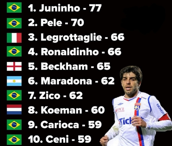 Najwięcej goli z rzutów wolnych w historii.