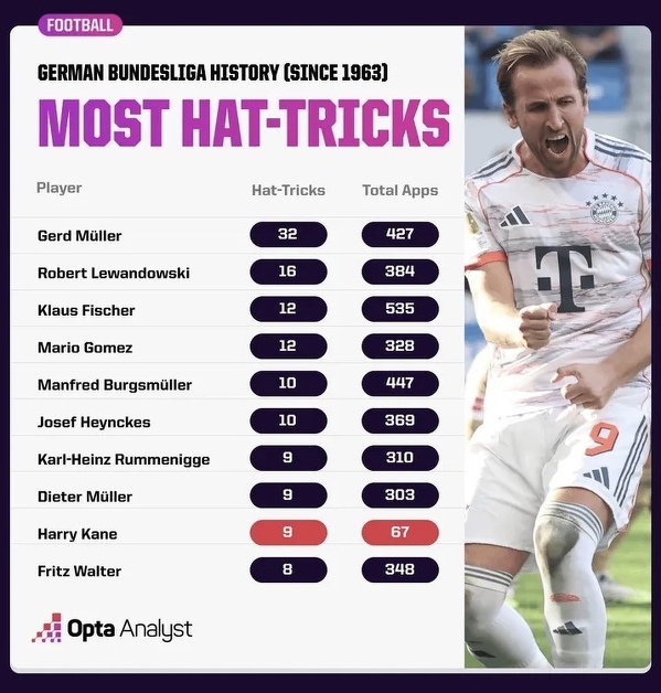 Najwięcej hat-tricków w Bundeslidze