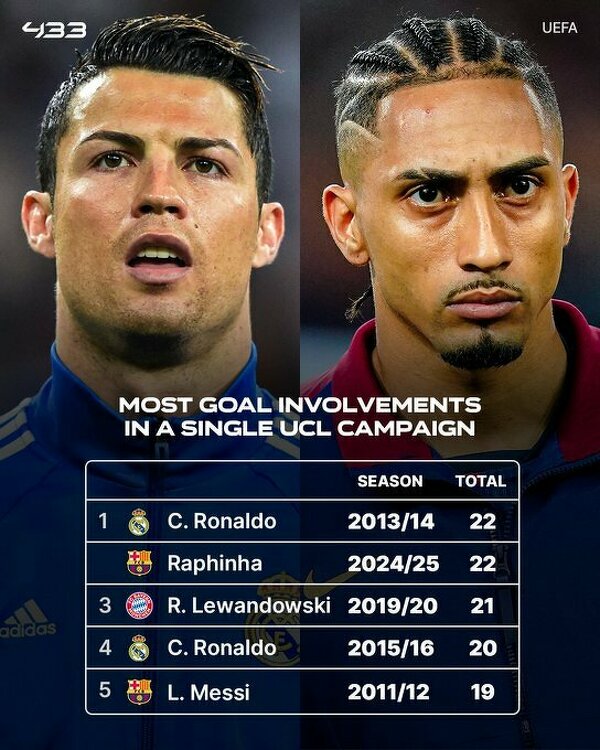 Najwięcej udziałów przy bramkach w jednym sezonie LM