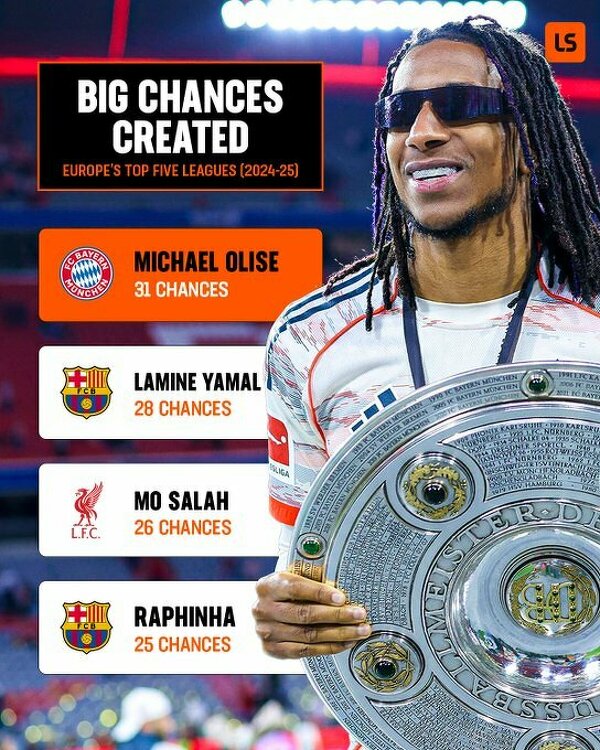 Najwięcej wykreowanych sytuacji w Bundeslidze w sezonie 2024/25