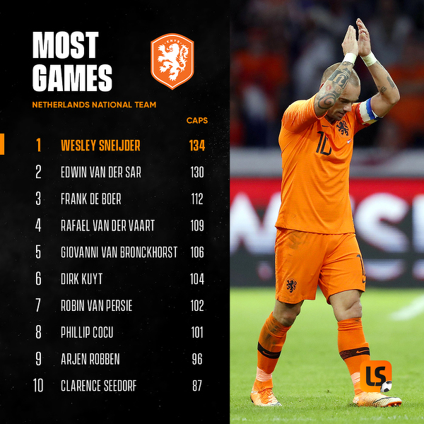 Najwięcej występów w reprezentacji Holandii