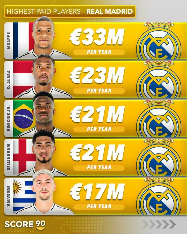 Największe zarobki w Realu Madryt