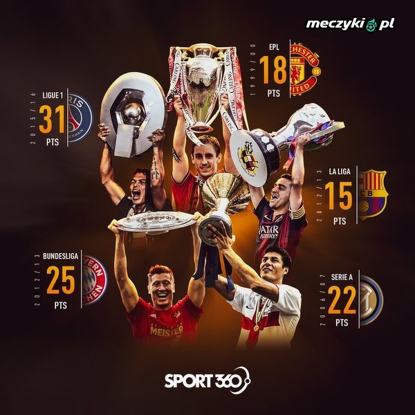 Największe zwycięskie marże dla każdej z 5 najlepszych lig