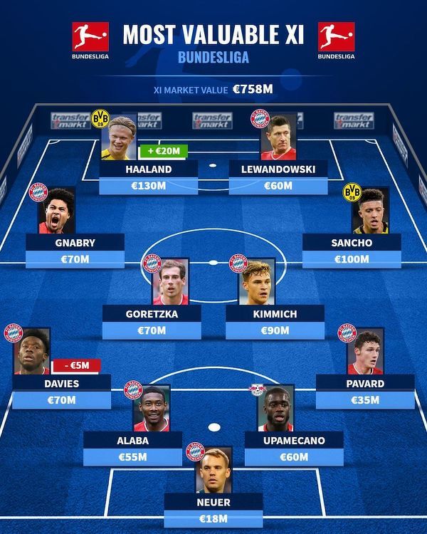 Najwyżej wyceniana jedenastka Bundesligi
