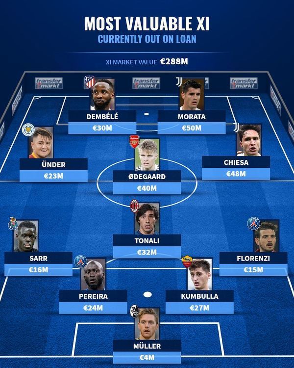 Najwyżej wyceniana jedenastka piłkarzy wypożyczonych