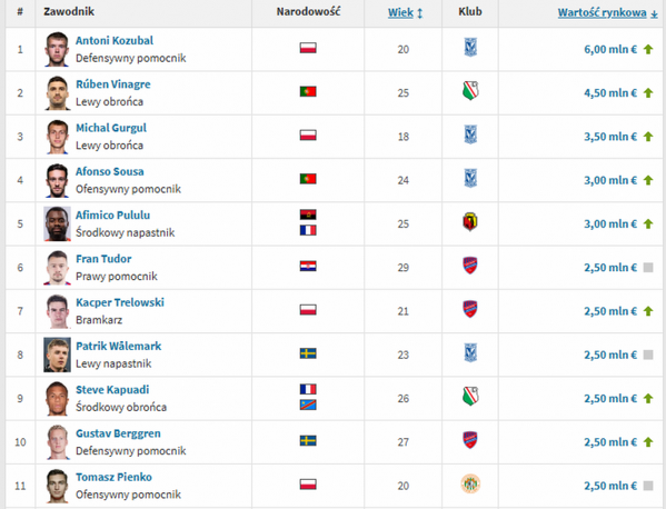 Najwyżej wyceniani piłkarze w Ekstraklasie