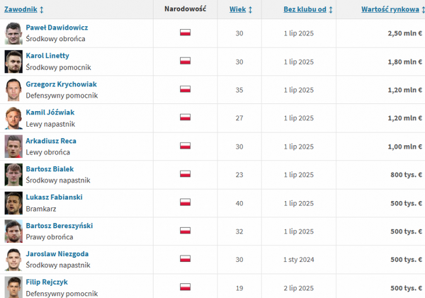 Najwyżej wyceniani Polacy bez klubu