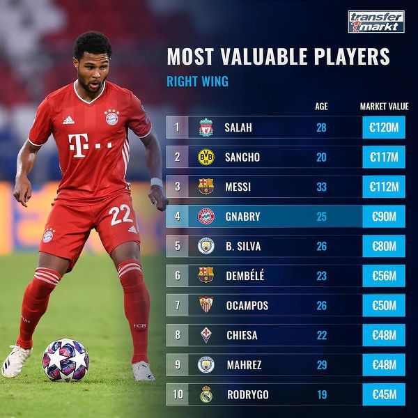 Najwyżej wyceniani prawoskrzydłowi według Transfermarkt