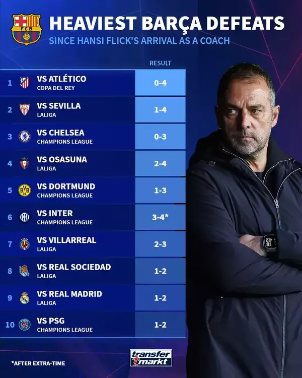 Najwyższe porażki Hansiego Flicka w FC Barcelonie