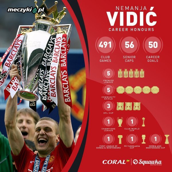 Nemanja Vidić Manchester United kupił go za 7 milionów funtów i wygrał 15 trofeów z klubem