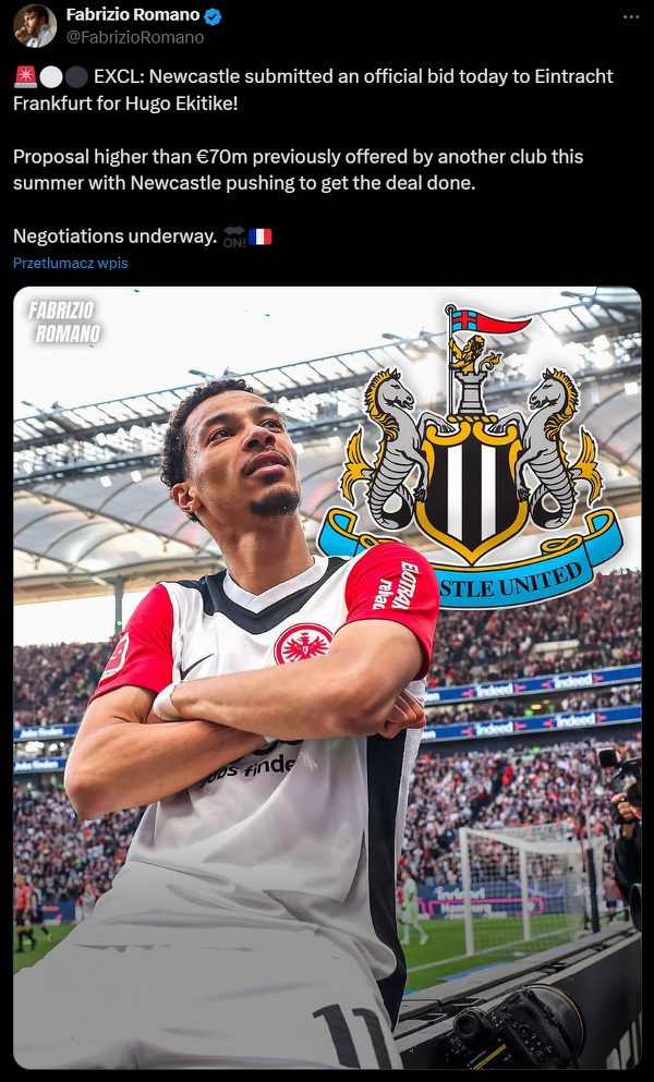 Newcastle United złożyło ofertę za Hugo Ekitike