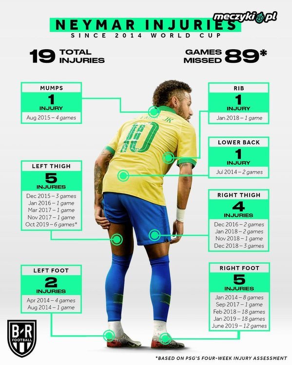 Neymar wyłączony z gry po raz kolejny