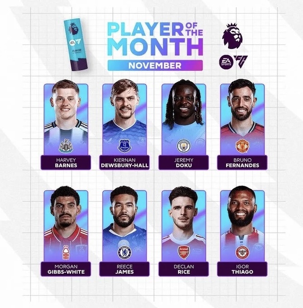 Nominowani do nagrody piłkarza miesiąca Premier League