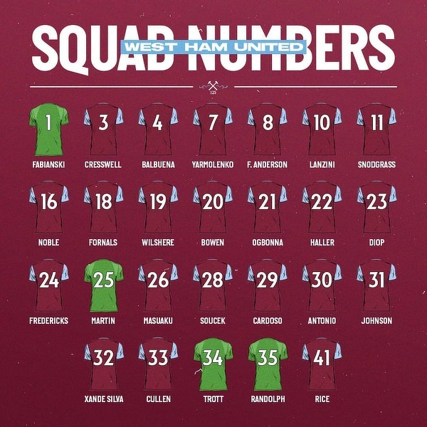 Numery koszulek zawodników West Hamu w nowym sezonie