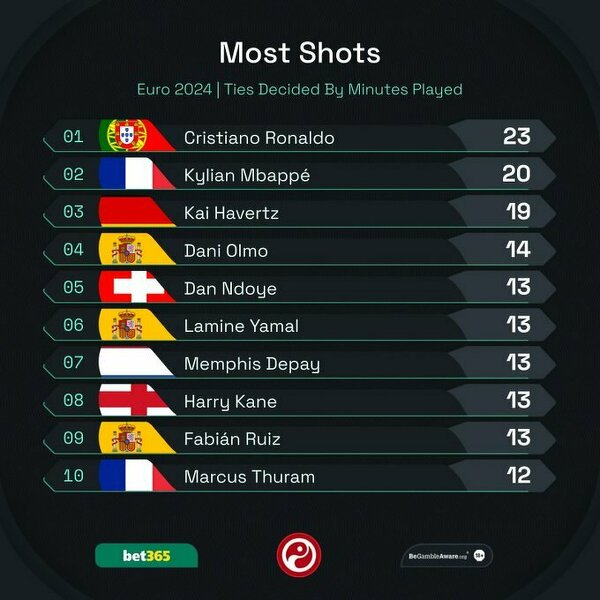 Oddał najwięcej strzałów w turnieju i nie zdobył bramki