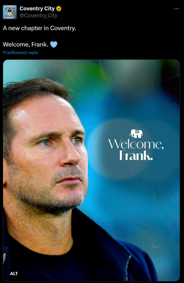 Oficjalnie: Frank Lampard menedżerem Coventry City