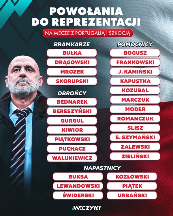 Oficjalnie: Kadra reprezentacji Polski na mecze z Portugalią i Szkocją!