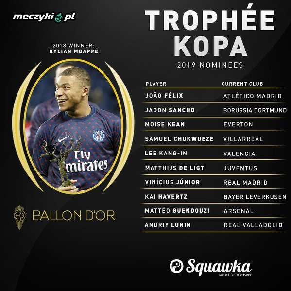 Oficjalnie: Nominowani do nagrody Trophée Kopa 2019
