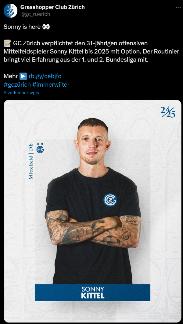 Oficjalnie: Sonny Kittel zawodnikiem Grasshopper Club Zurych