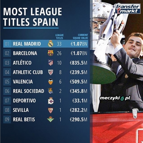 Oni mają najwięcej tytyłów mistrzowskich w Hiszpanii