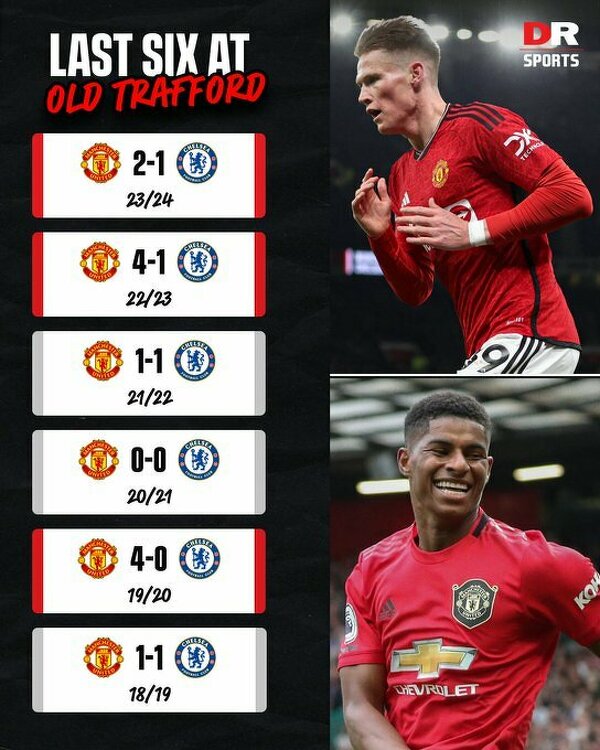 Ostatnie 6 starć Man Utd vs Chelsea na Old Trafford