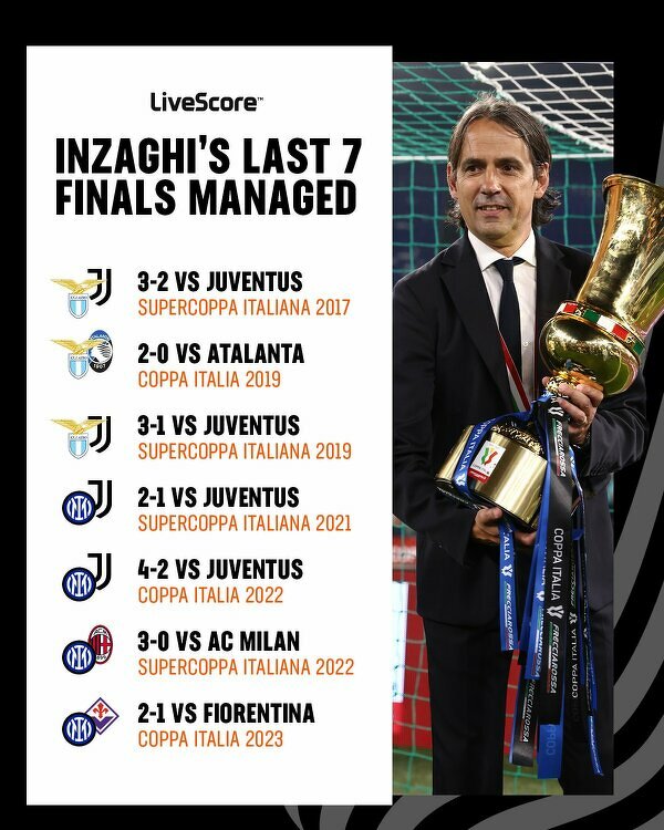 Ostatnie 7 finałów Simone Inzaghiego w roli trenera