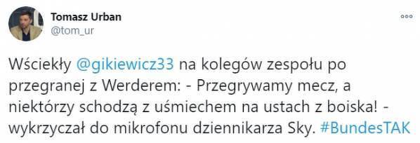 Ostra reakcja Gikiewicza po porażce z Werderem