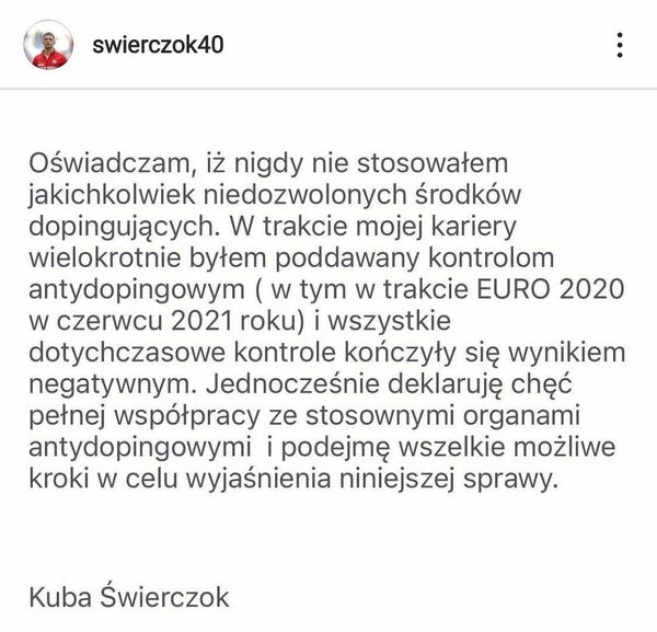 Oświadczenie Jakuba Świerczoka w sprawie informacji o wykryciu dopingu u napastnika Nagoyi Grampus