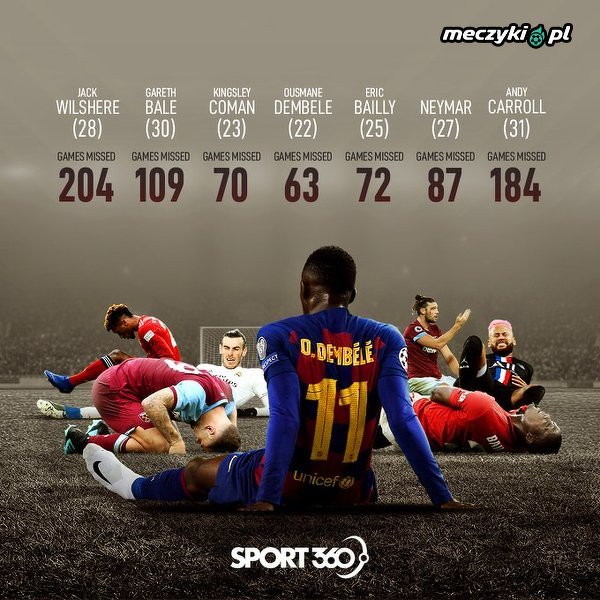 Ousmane Dembele szybko staje się jednym z najbardziej podatnych na kontuzje graczy w piłce nożnej
