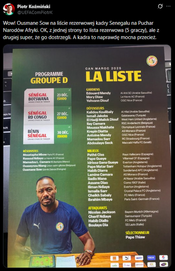 Ousmane Sow z Górnika Zabrze na liście rezerwowej kadry Senegalu na Puchar Narodów Afryk