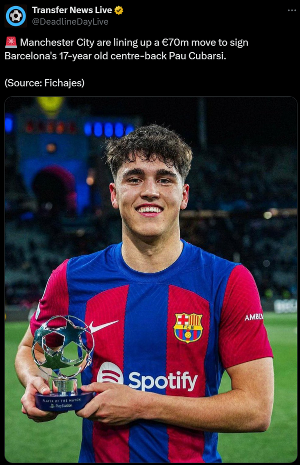 Pau Cubarsi w kręgu zainteresowań Manchesteru City