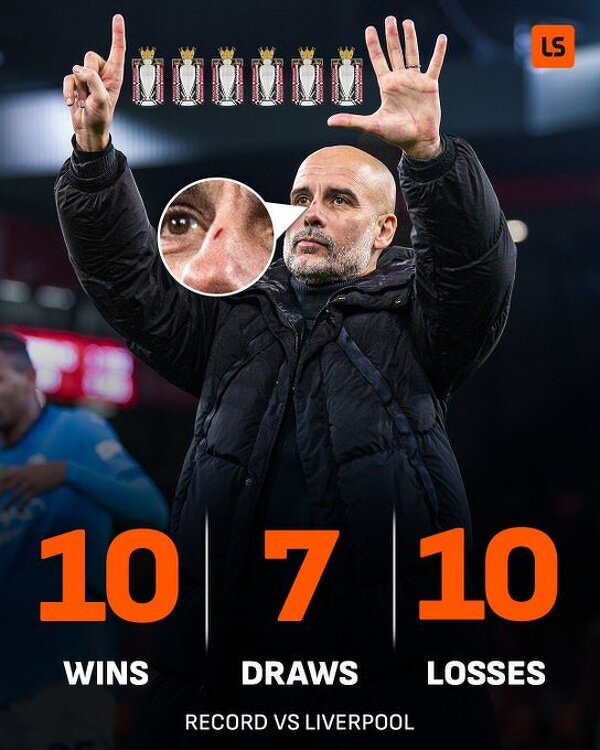 Pep Guardiola w meczach z Liverpoolem