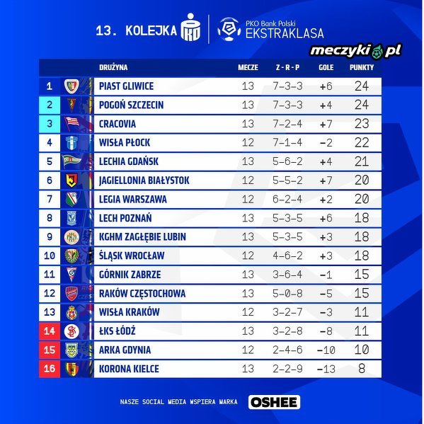 Piast Gliwice znalazł się na pierwszym miejscu