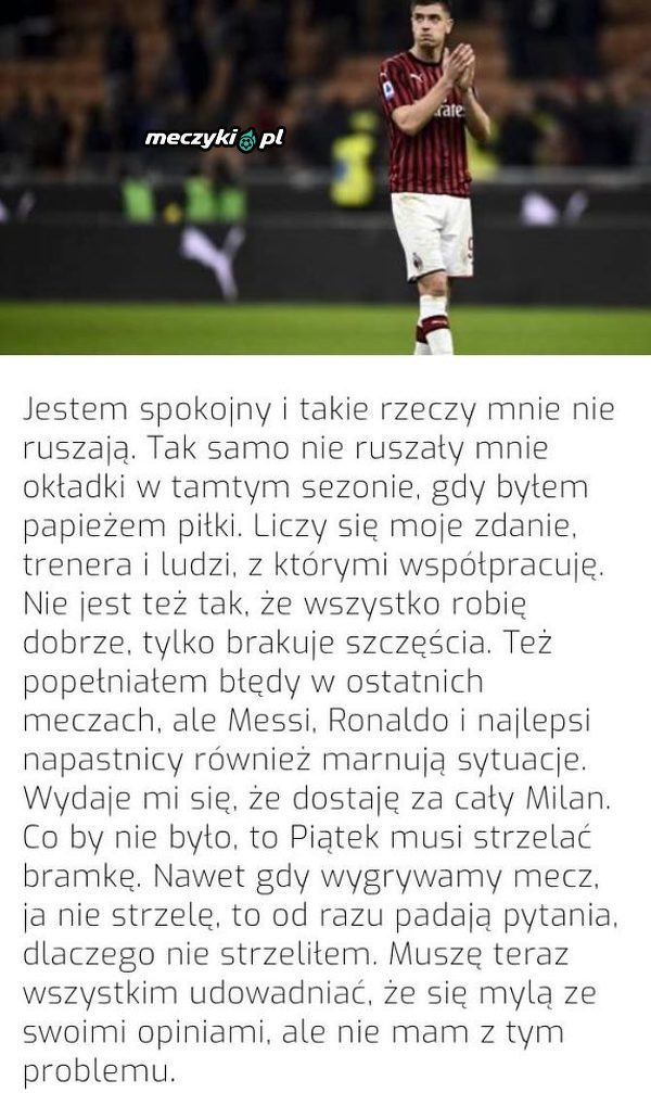 Piątek nie przejmuje się krytyką, jaka na niego spada
