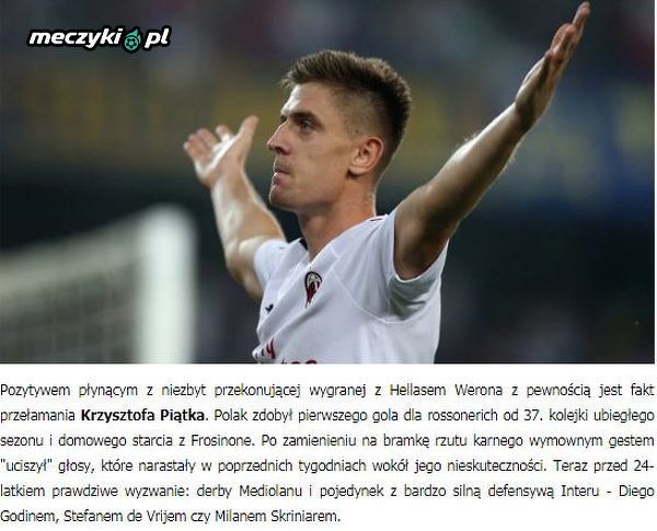 Piątek przełamał niemoc i "uciszył" krytykę. Teraz zapoluje na Inter