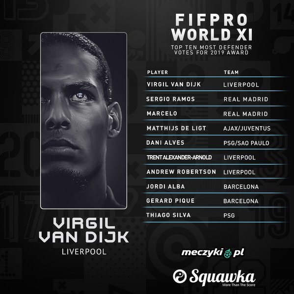 Pierwsza dziesiątka najczęściej głosowanych obrońców w FIFPro World XI