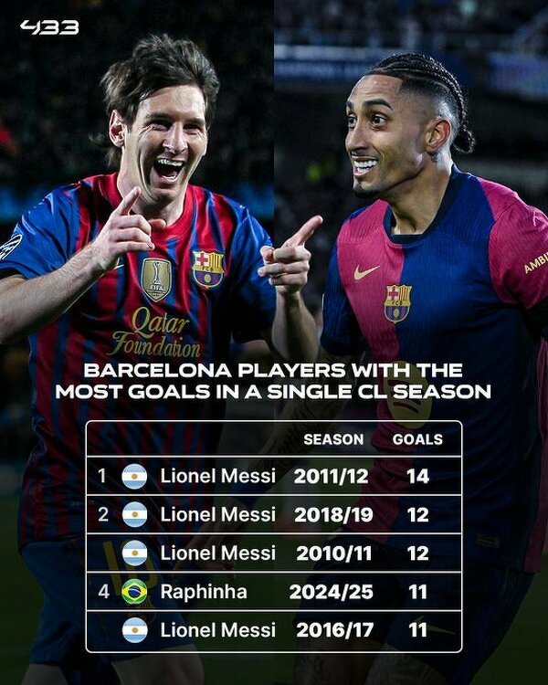 Piłkarze Barcelony, którzy strzelili najwięcej goli w jednym sezonie Ligi Mistrzów