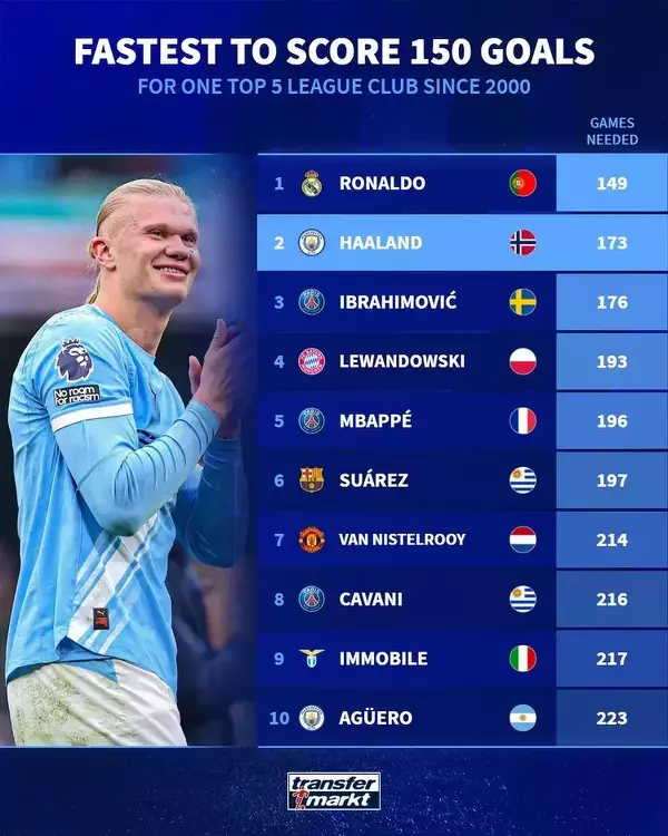 Piłkarze, którzy najszybciej strzelili 150 goli dla jednego klubu