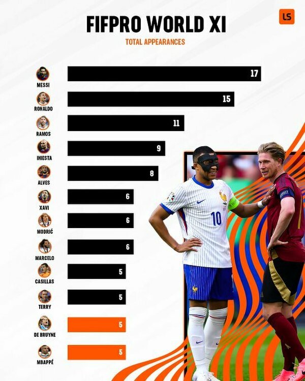 Piłkarze, którzy najwięcej razy znaleźli się w XI roku FIFA