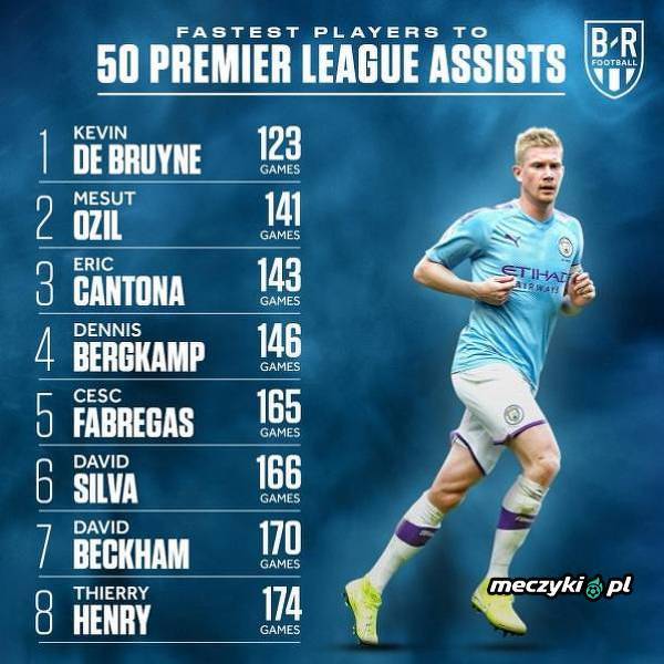 Piłkarze, którzy potrzebowali najmniejszej liczy spotkań do osiągnięcia 50 asyst w Premier League